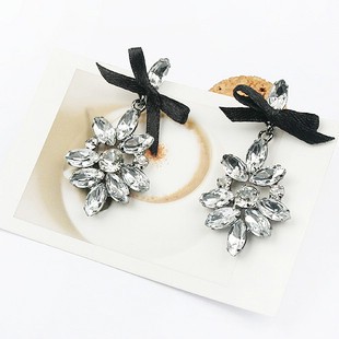 [Bowknot with flower earrings Eh00118black] |