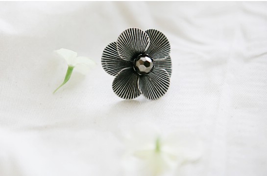 [Retro flower with diamond setting ring ]