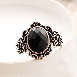 [Retro carving with shinny jewel ring Jz00166black] |