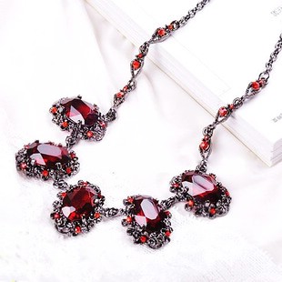 [Big jewel silver necklace Xl00191rose] |