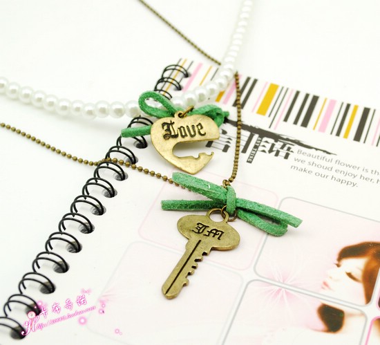 wholesale Home >>Fashion Jewelry>>Multi-color retro key and lock pearl necklace