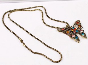 [ Occident long style retro butterfly necklace Xl00204bronze] |