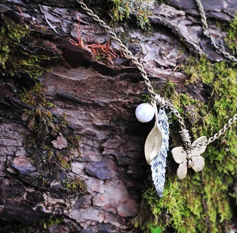 wholesale Home >>Fashion Jewelry>>Lover gift pearl feather necklace Xl00286silver