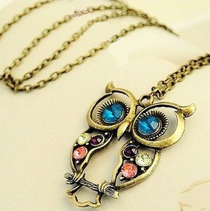 [Diamond retro owl necklace Xl00312] |