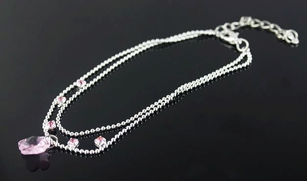 [Beads chain with pink diamond double anklets ] |