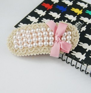 Product Name: Retro lace pearl bowknot barrette Fj00011pink